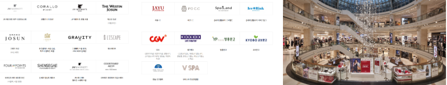 | 호텔 | JW 메리어트, 웨스틴 조선, 노보텔 |