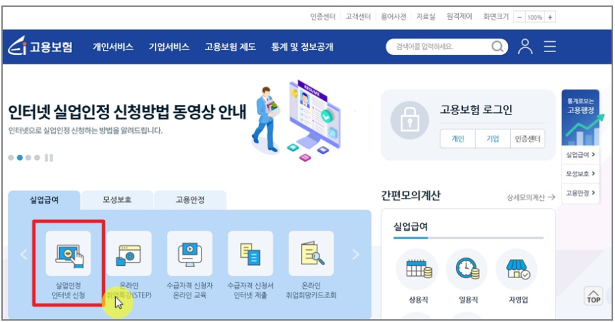✔️ 실업급여 온라인 신청 메뉴 선택